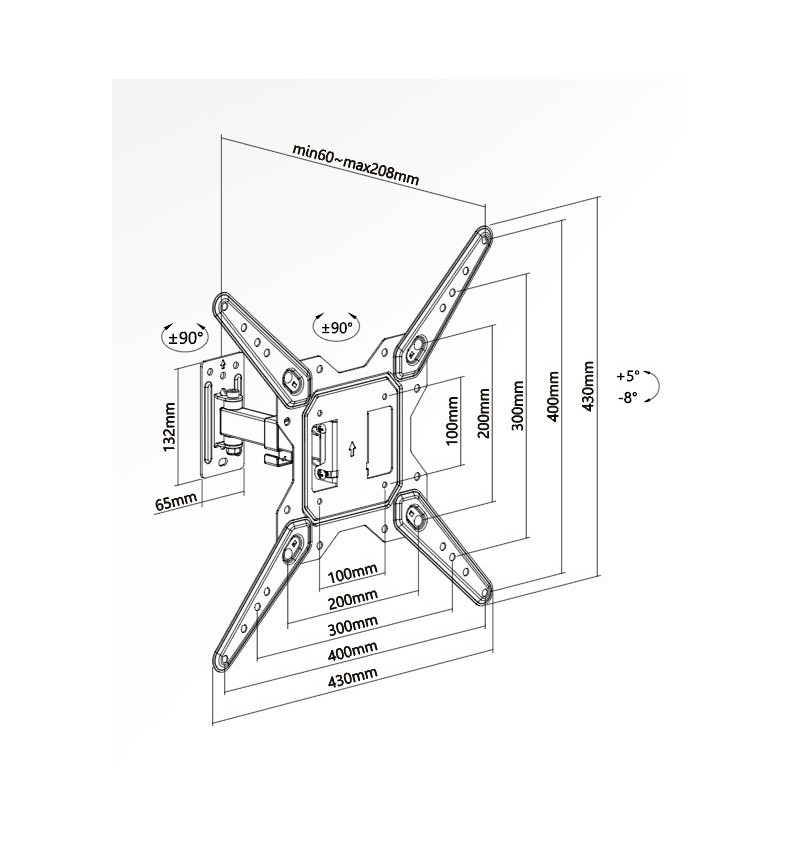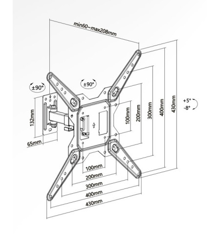 - Compatible con VESA máx.: 100×100, 100×200, 200×100, 200×200, 300×200, 300×300, 400×200, 400×300, 400×400